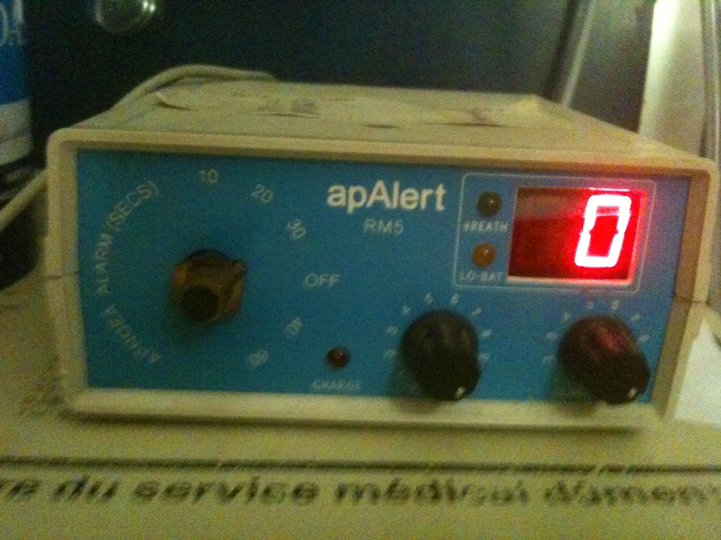 Cette sonde est reliée à un appareil qui indique par un signal sonore chaque respiration du patient et une alarme se met en place en cas d’apnée prolongée.