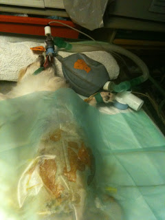 Pour cela il est nécessaire de mettre en place une sonde trachéale (tube en plastique qui est placé,dans la trachée après la prémédication et donc pendant son sommeil). Cette sonde est reliée à un appareil d’anesthésie gazeuse qui permet d’une part l’apport d’oxygène et le contrôle de la respiration, mais aussi d’autre part, un contrôle du degré d’anesthésie avec la possibilité de prendre en charge la suite de l’anesthésie par un gaz anesthésiant volatile (si le patient commence à se réveiller).