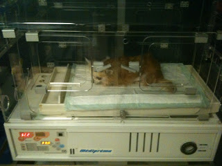 L’hypothermie est systématique lors d’une anesthésie et ne doit JAMAIS être négligée, en particulier chez les patients de petit gabarit comme le chihuahua. Des mesures simples comme une alèse lors de l’intervention voir des bouillottes sont mises en place pendant l’acte chirurgical. Nous disposons également à la clinique d’une couveuse pour « bébé » qui permet de réchauffer efficacement et rapidement les chihuahuas pendant la période de réveil. Lors d’interventions longues ce dispositif est parfaitement adapté car c’est de loin la méthode la plus efficace pour permettre un retour à une température normale progressive, sans risque de brûlures.